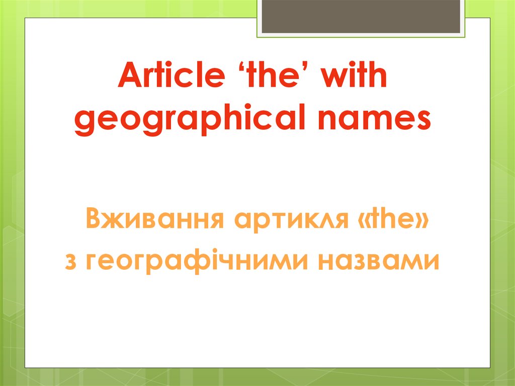 Вживання артикля «the»з географічними назвами