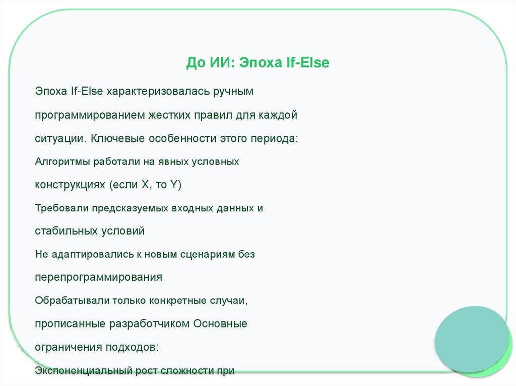 До ИИ: Эпоха If-ElseЭпоха If-Else характеризовалась ручным