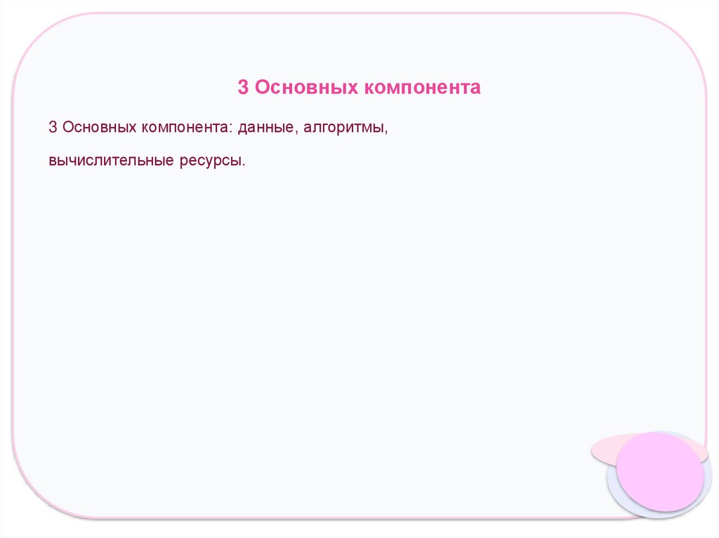 3 Основных компонента3 Основных компонента: данные, алгоритмы,