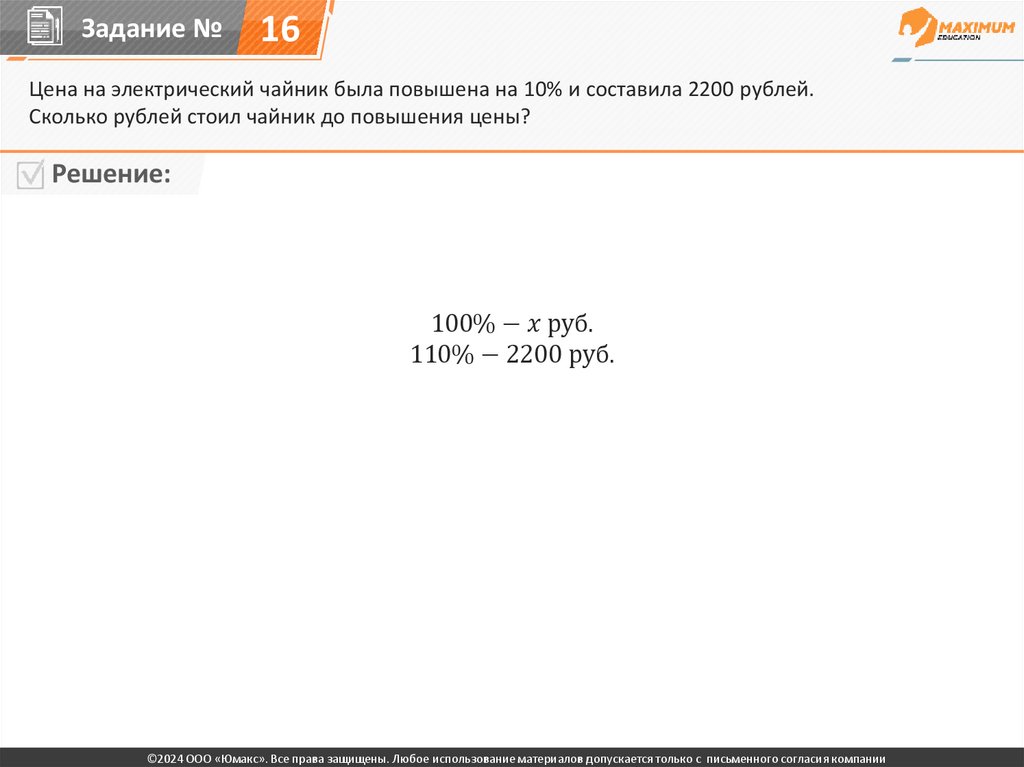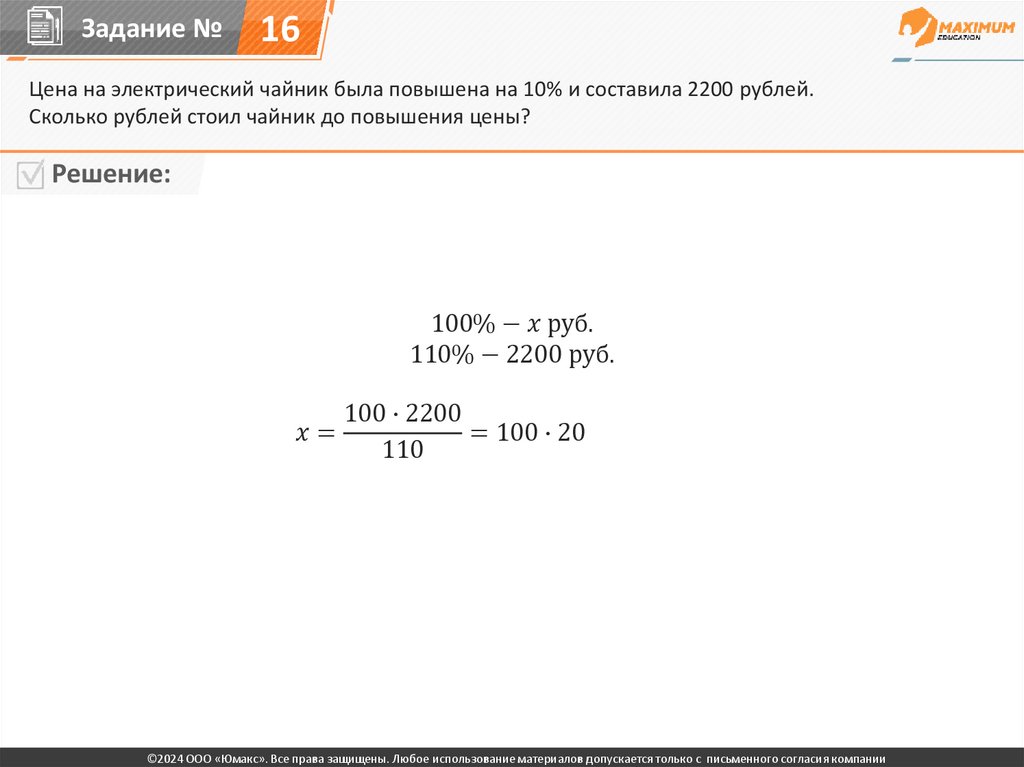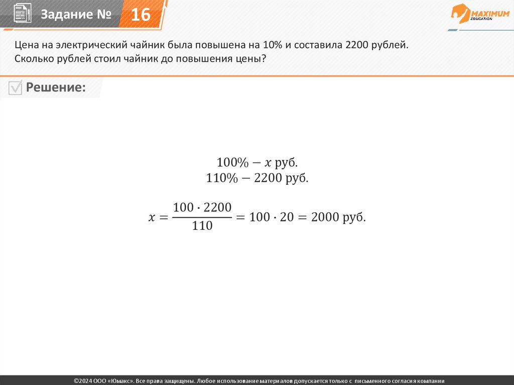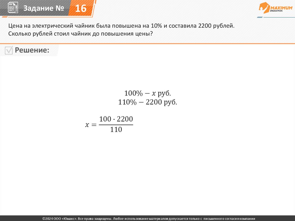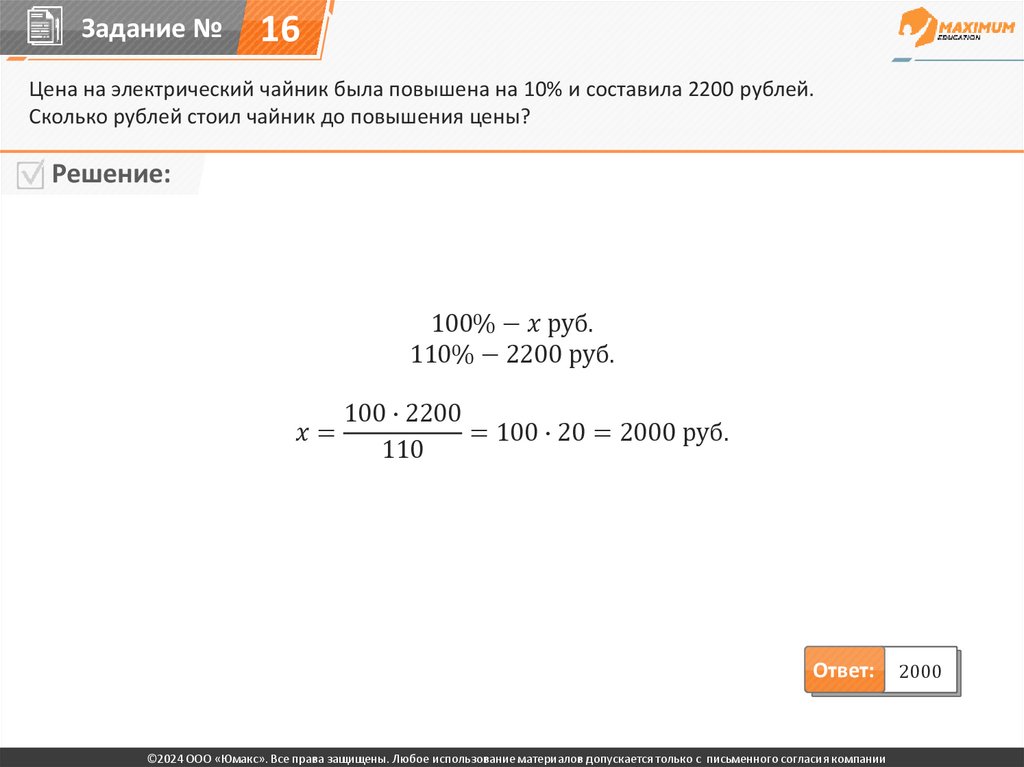 Цена на электрический чайник была повышена на 10% и составила 2200 рублей.