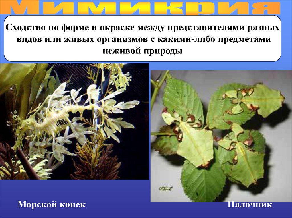 Сходство по форме и окраске между представителями разныхвидов или живых организмов с какими-либо предметами