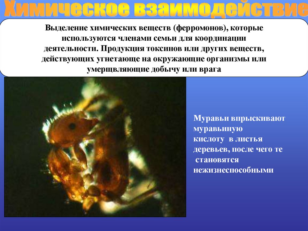 Выделение химических веществ (ферромонов), которыеиспользуются членами семьи для координации