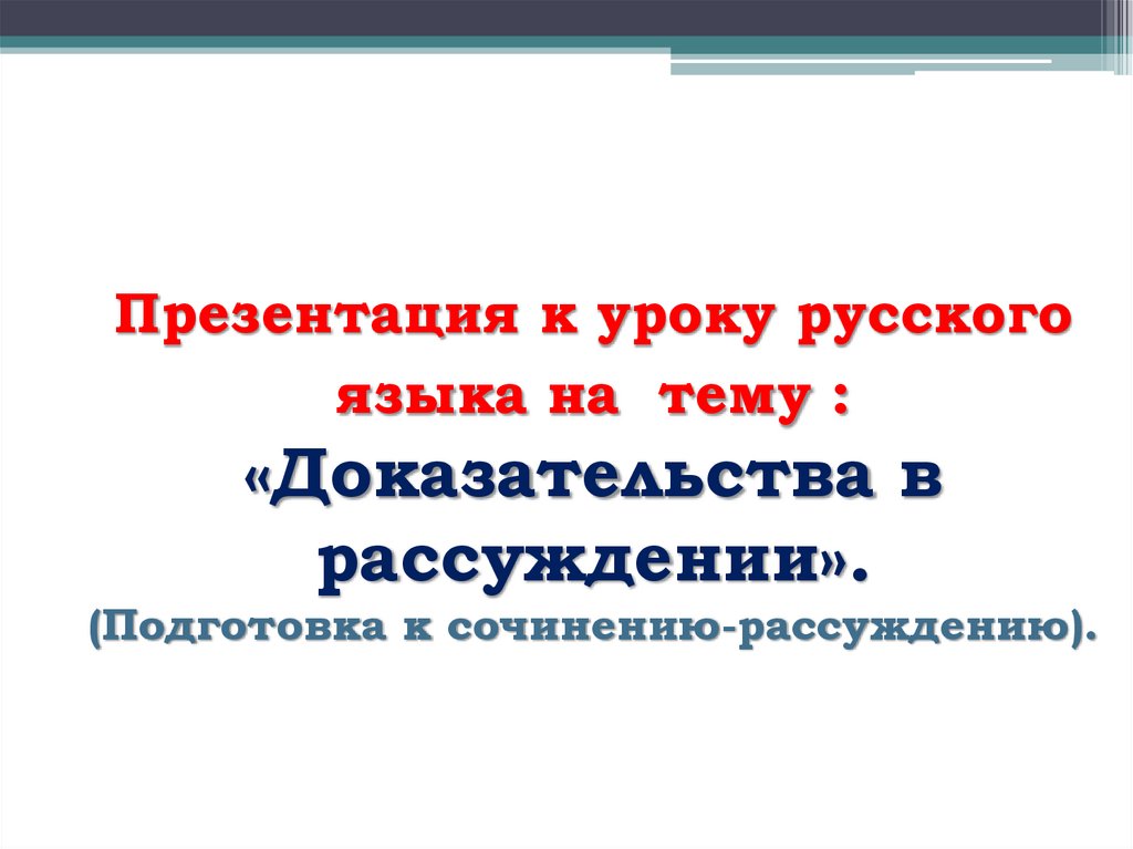 1. Презентация к уроку русского языка на тему : «Доказательства в рассуждении». (Подготовка к сочинению-рассуждению).