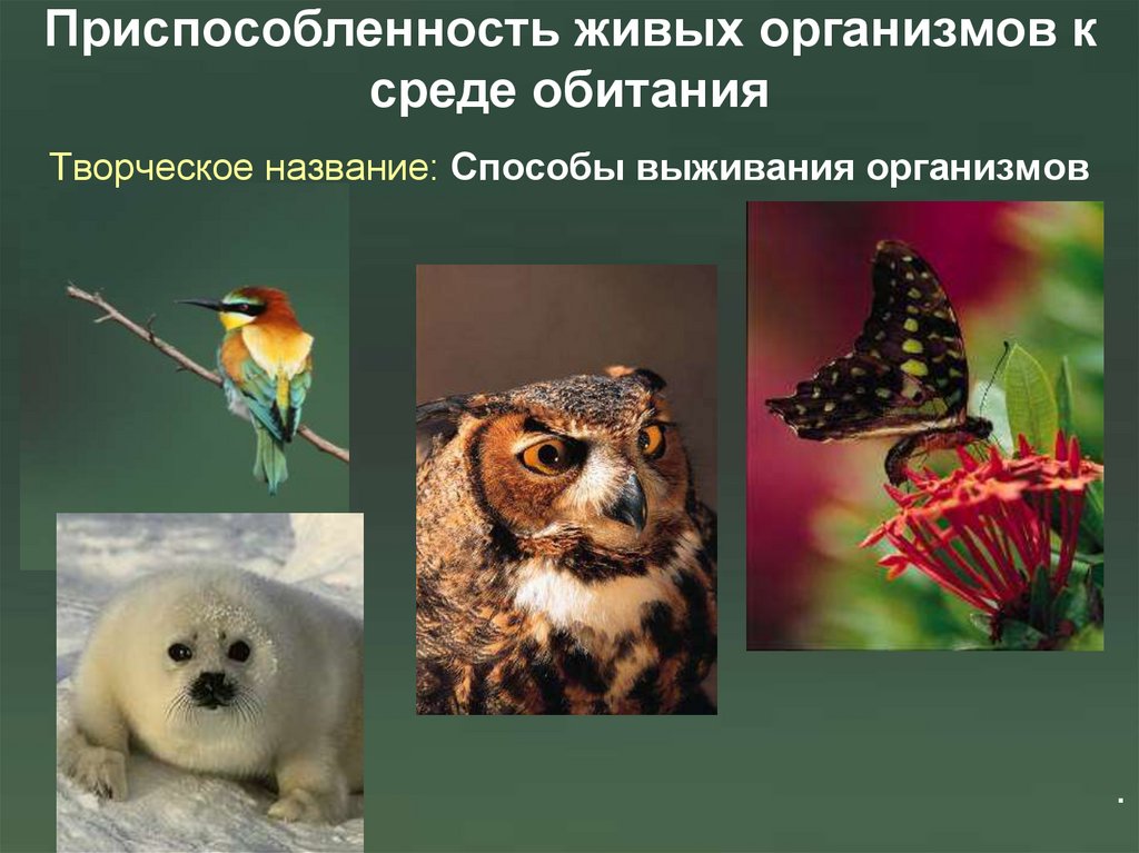 1. Приспособленность живых организмов к среде обитания Творческое название: Способы выживания организмов