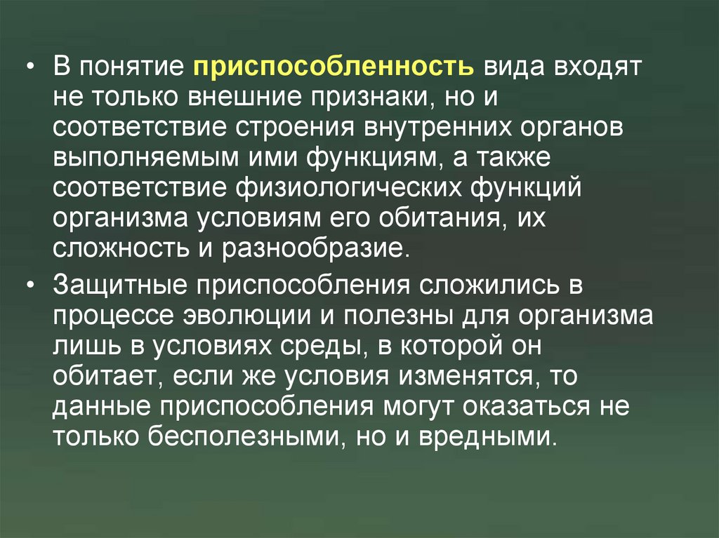 • В понятие приспособленность вида входятне только внешние признаки, но и