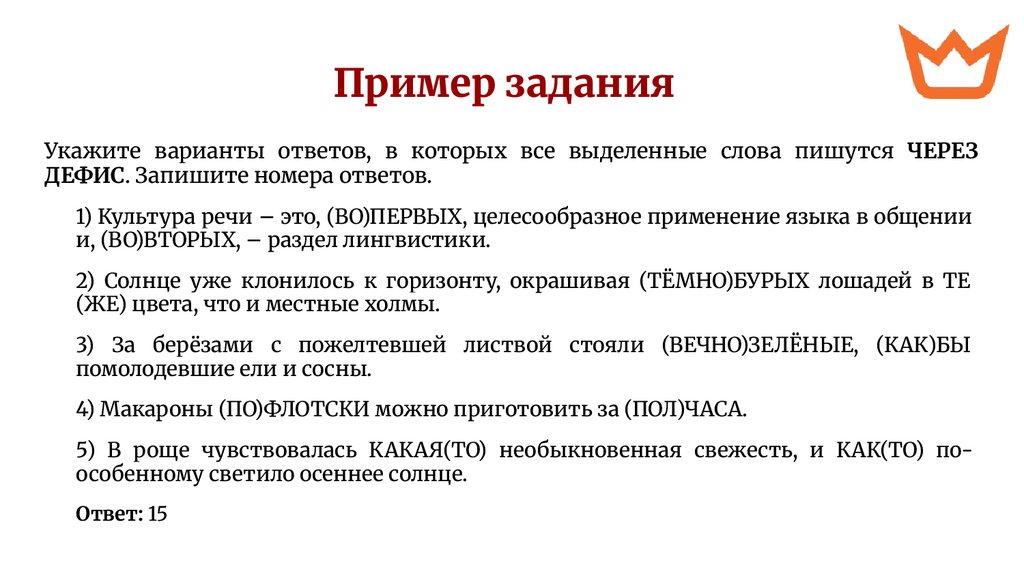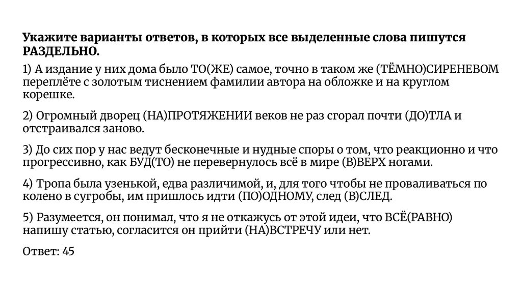 Пример заданияУкажите варианты ответов, в которых все выделенные слова пишутся ЧЕРЕЗ