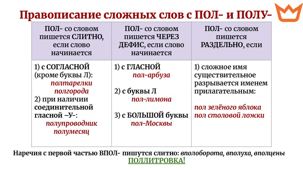 Правописание сложных слов с ПОЛ- и ПОЛУПОЛ- со словомпишется СЛИТНО,