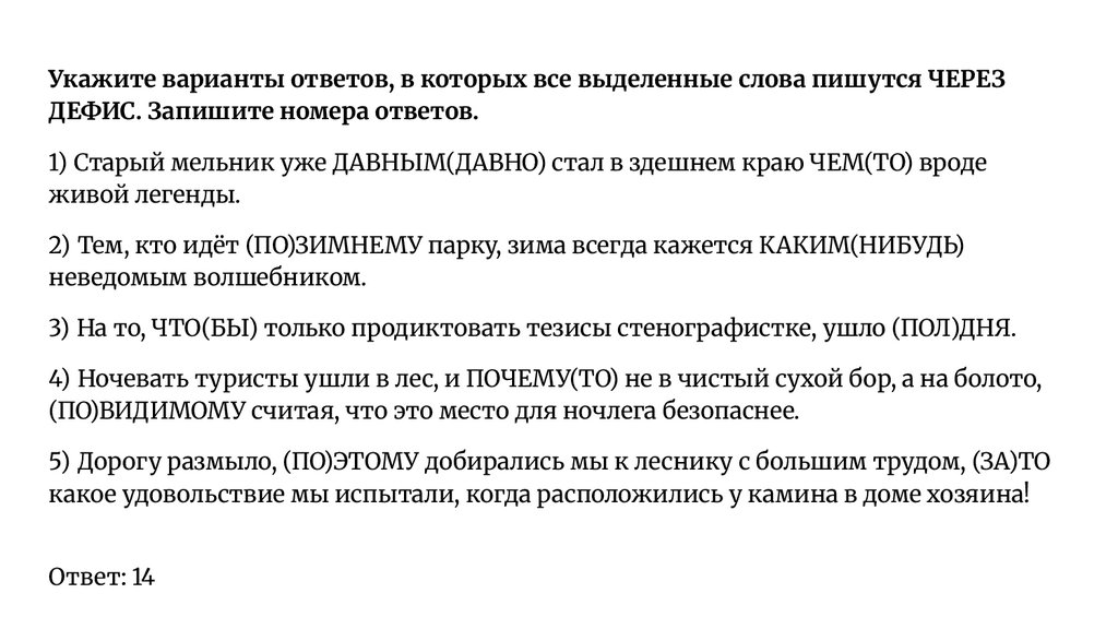 2) Тем, кто идёт (ПО)ЗИМНЕМУ парку, зима всегда кажется КАКИМ(НИБУДЬ)