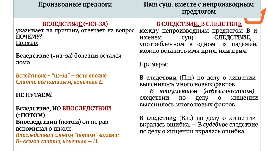 В СЛЕДСТВИИ, В СЛЕДСТВИЕ