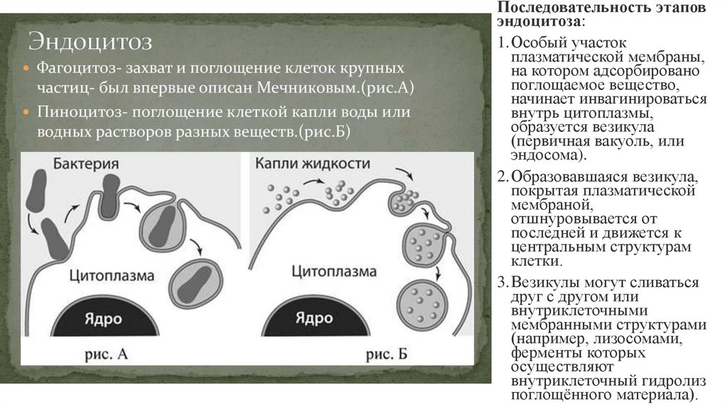 Последовательность этаповэндоцитоза: