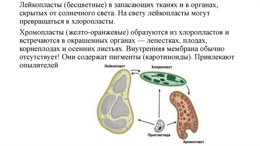 Хромопласты (желто-оранжевые) образуются из хлоропластов и