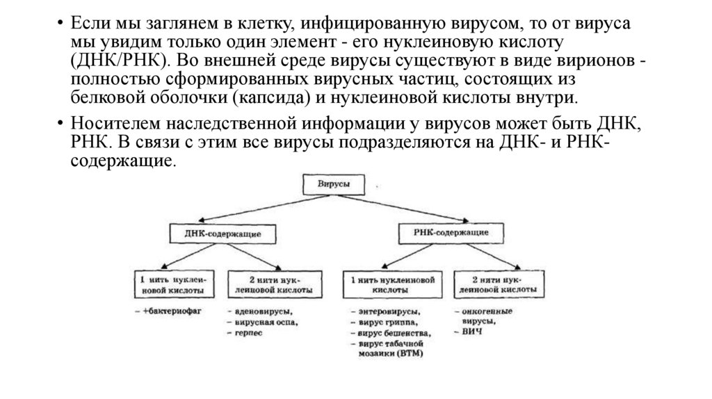 РНК. В связи с этим все вирусы подразделяются на ДНК- и РНКсодержащие.