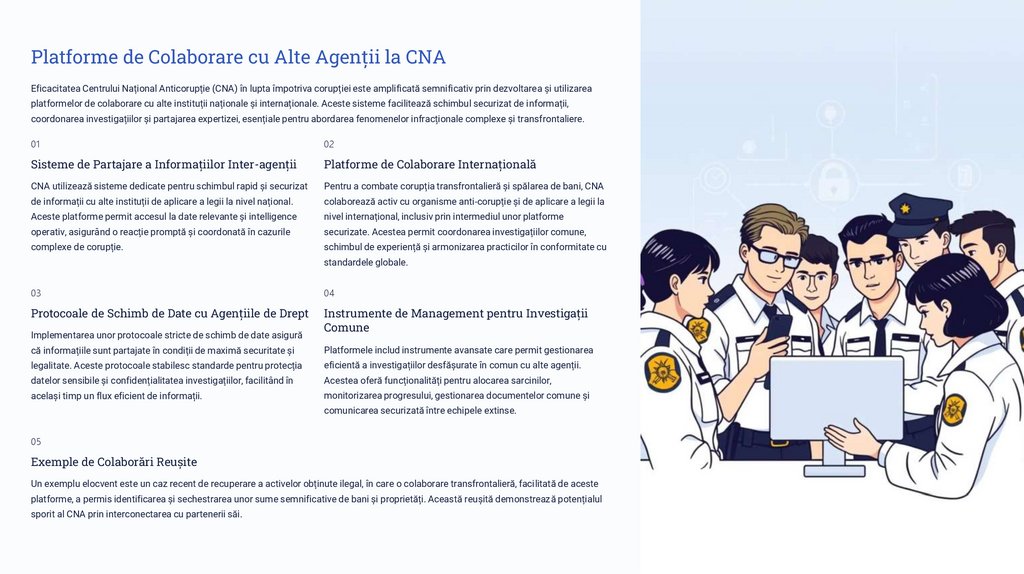 platformelor de colaborare cu alte instituții naționale și internaționale. Aceste sisteme facilitează schimbul securizat de informații,