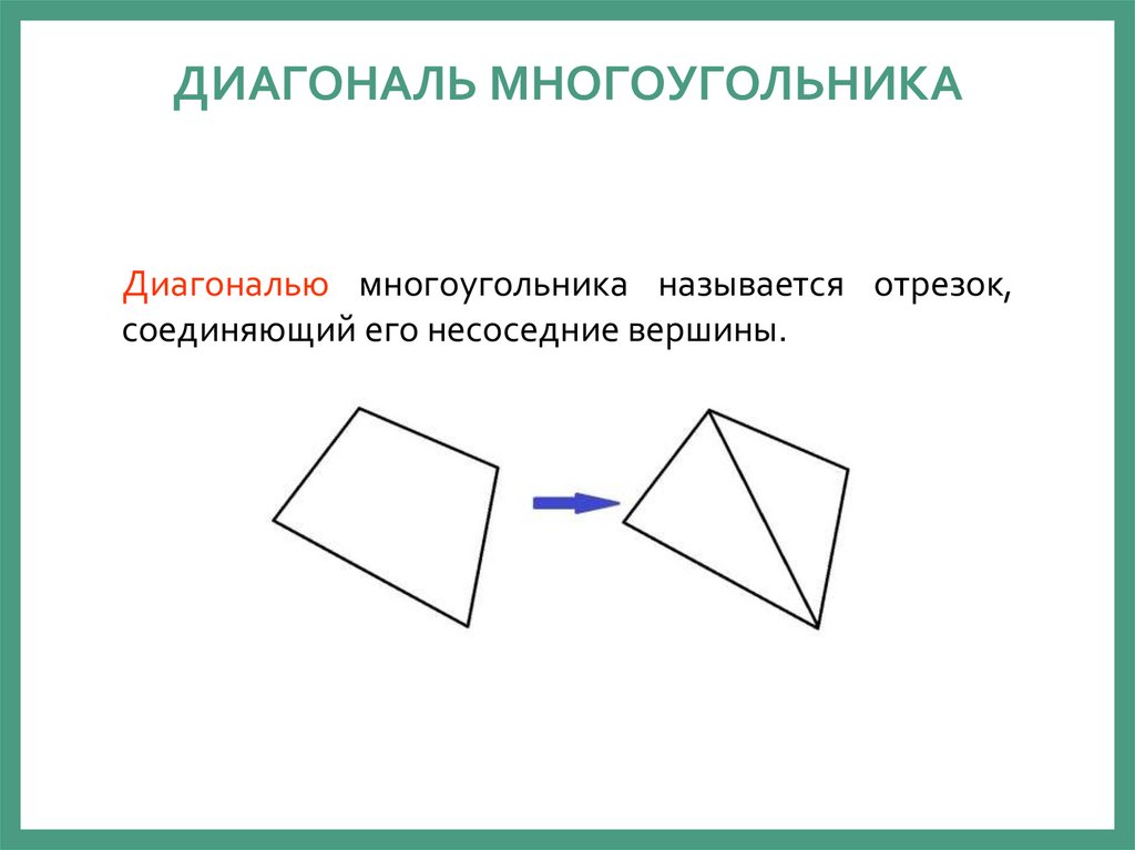 ДИАГОНАЛЬ МНОГОУГОЛЬНИКАДиагональю многоугольника называется отрезок,