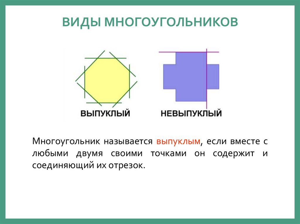 ВИДЫ МНОГОУГОЛЬНИКОВМногоугольник называется выпуклым, если вместе с
