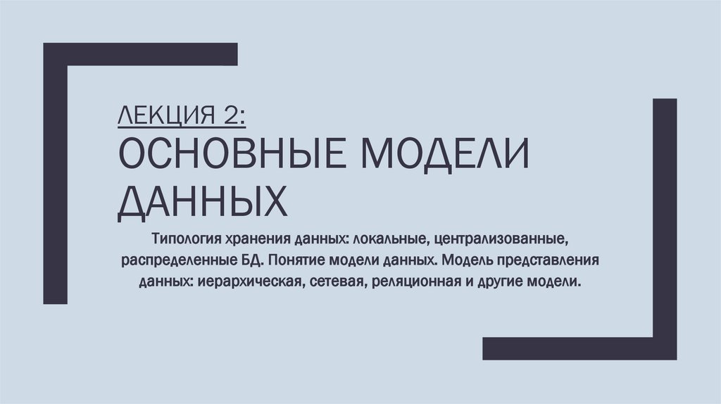 ЛЕКЦИЯ 2:ОСНОВНЫЕ МОДЕЛИ