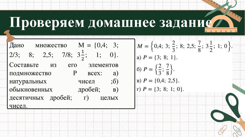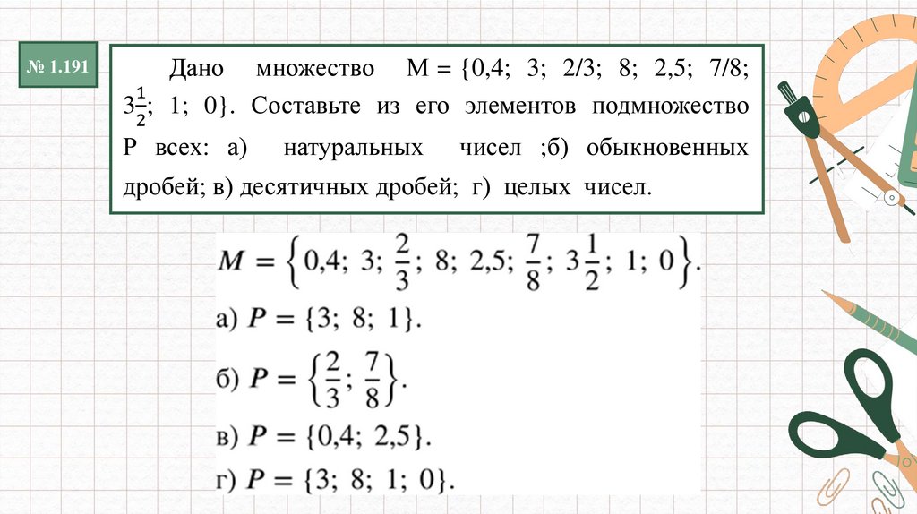№ 1.191Дано множество М = {0,4; 3; 2/3; 8; 2,5; 7/8;