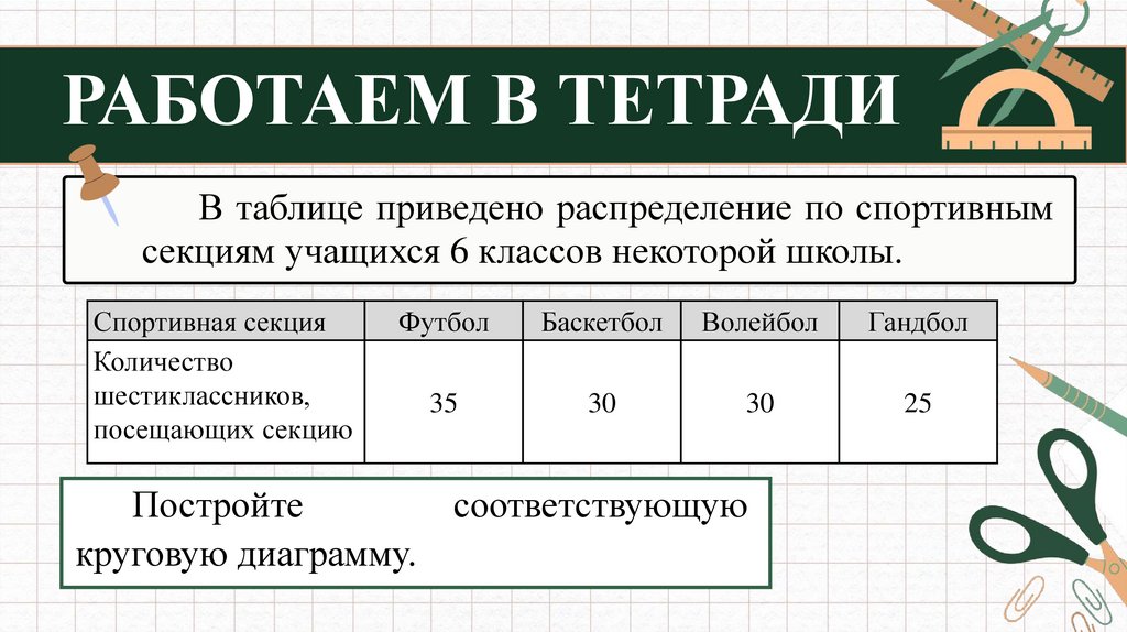 РАБОТАЕМ В ТЕТРАДИВ таблице приведено распределение по спортивным