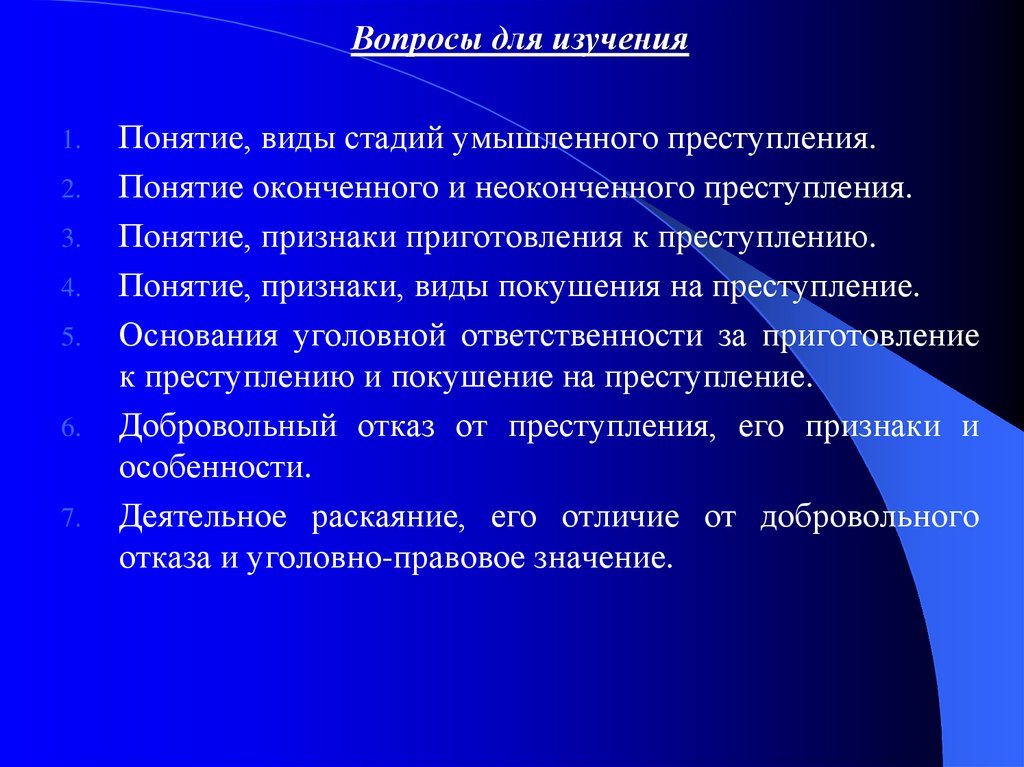 Тема 5. Стадии совершенияпреступления
