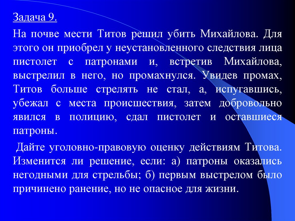 Задача 9.На почве мести Титов решил убить Михайлова. Для