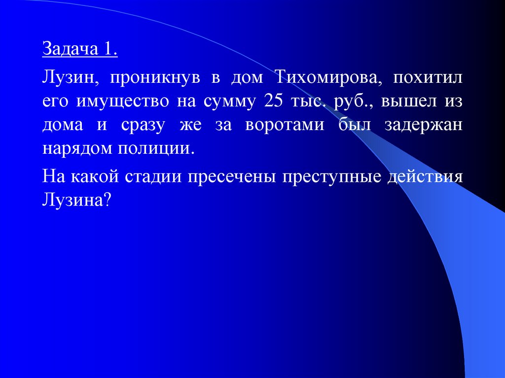 Задача 1.Лузин, проникнув в дом Тихомирова, похитил