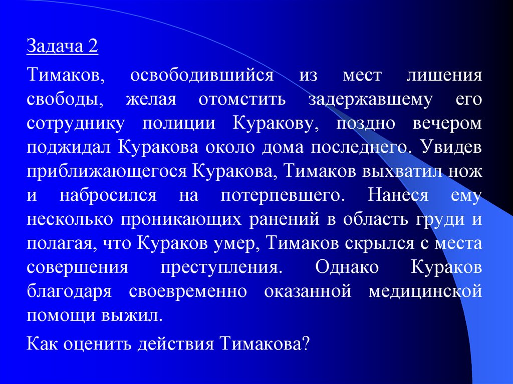 Задача 2Тимаков, освободившийся из мест лишения