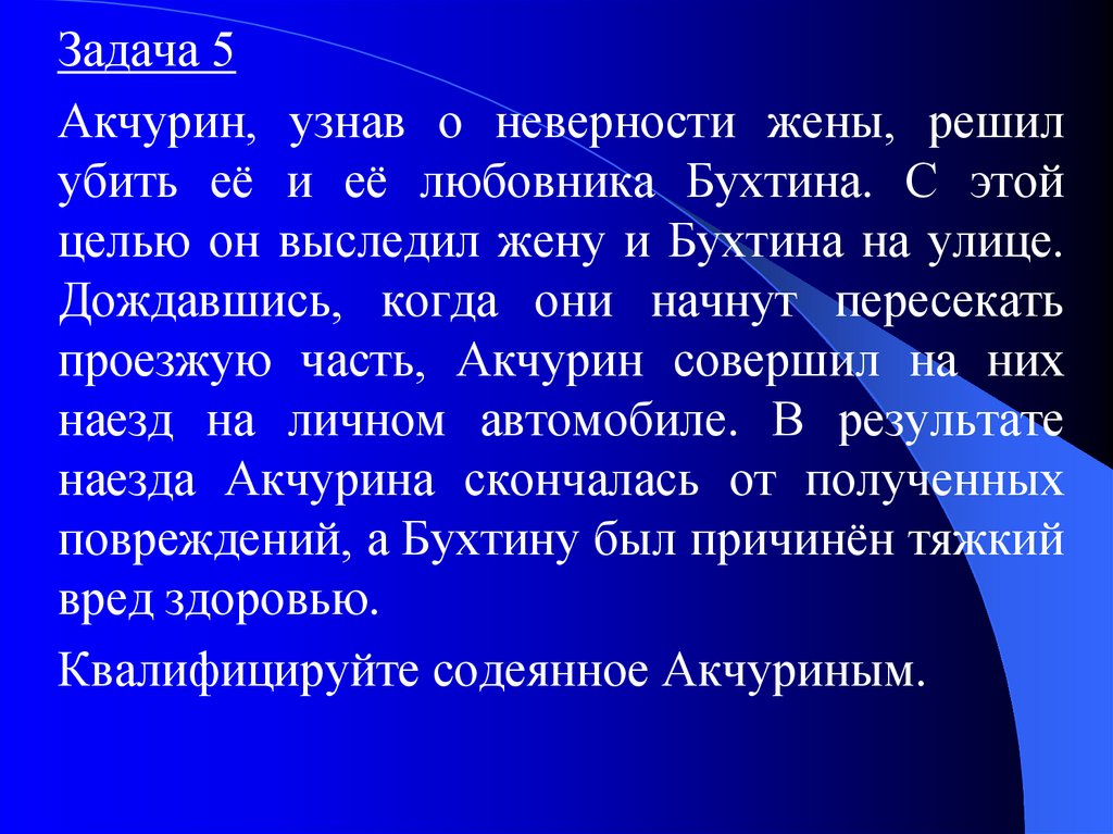Задача 5Акчурин, узнав о неверности жены, решил