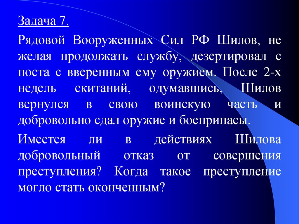 Задача 7.Рядовой Вооруженных Сил РФ Шилов, не