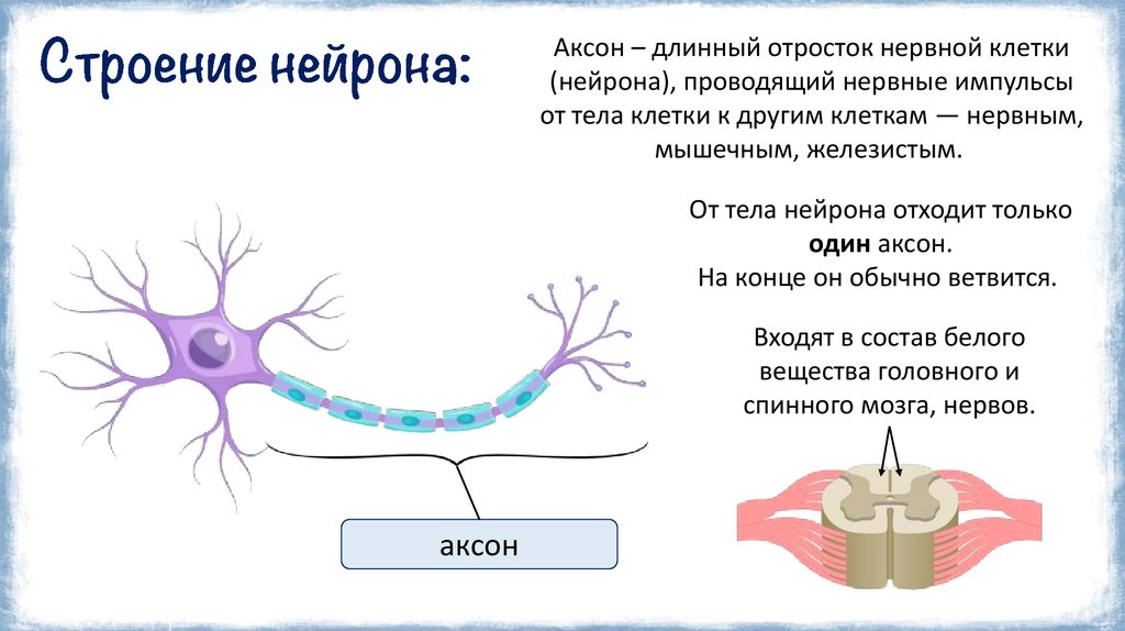 Аксон – длинный отросток нервной клетки(нейрона), проводящий нервные импульсы