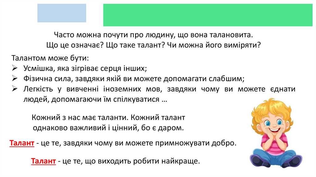 Часто можна почути про людину, що вона талановита.Що це означає? Що таке талант? Чи можна його виміряти?
