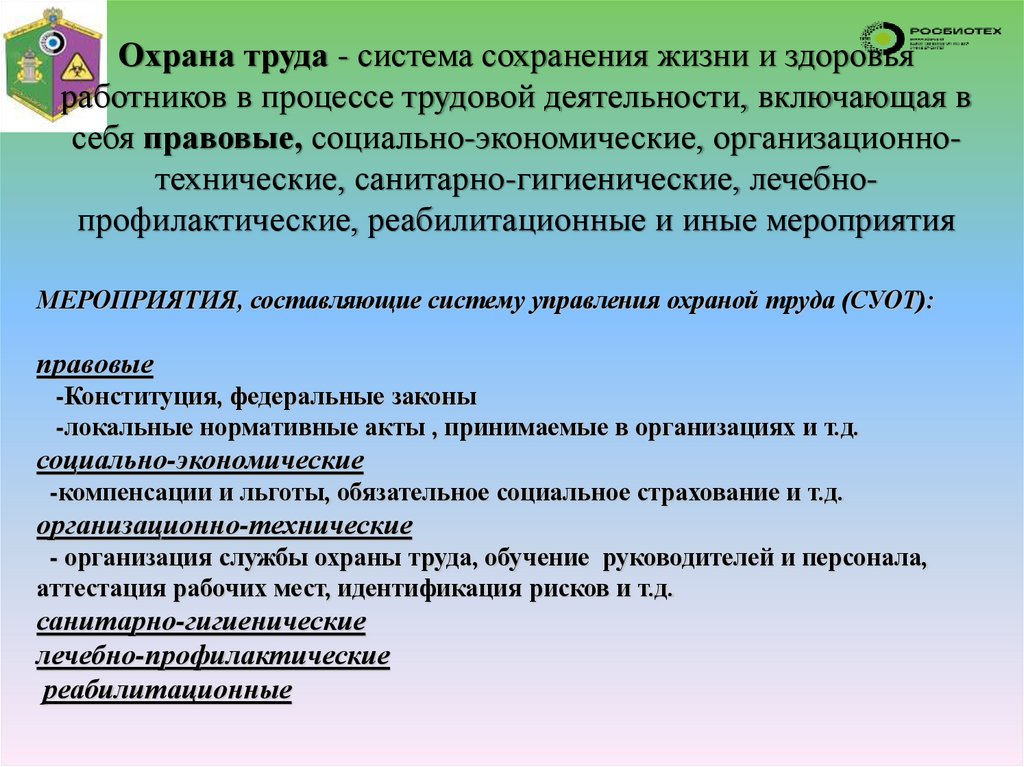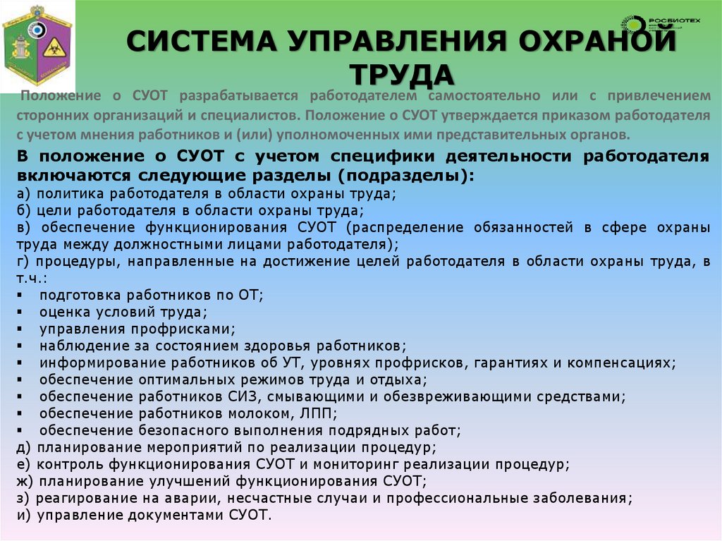 МЕРОПРИЯТИЯ, составляющие систему управления охраной труда (СУОТ):