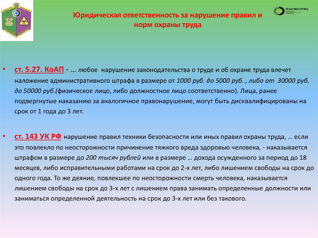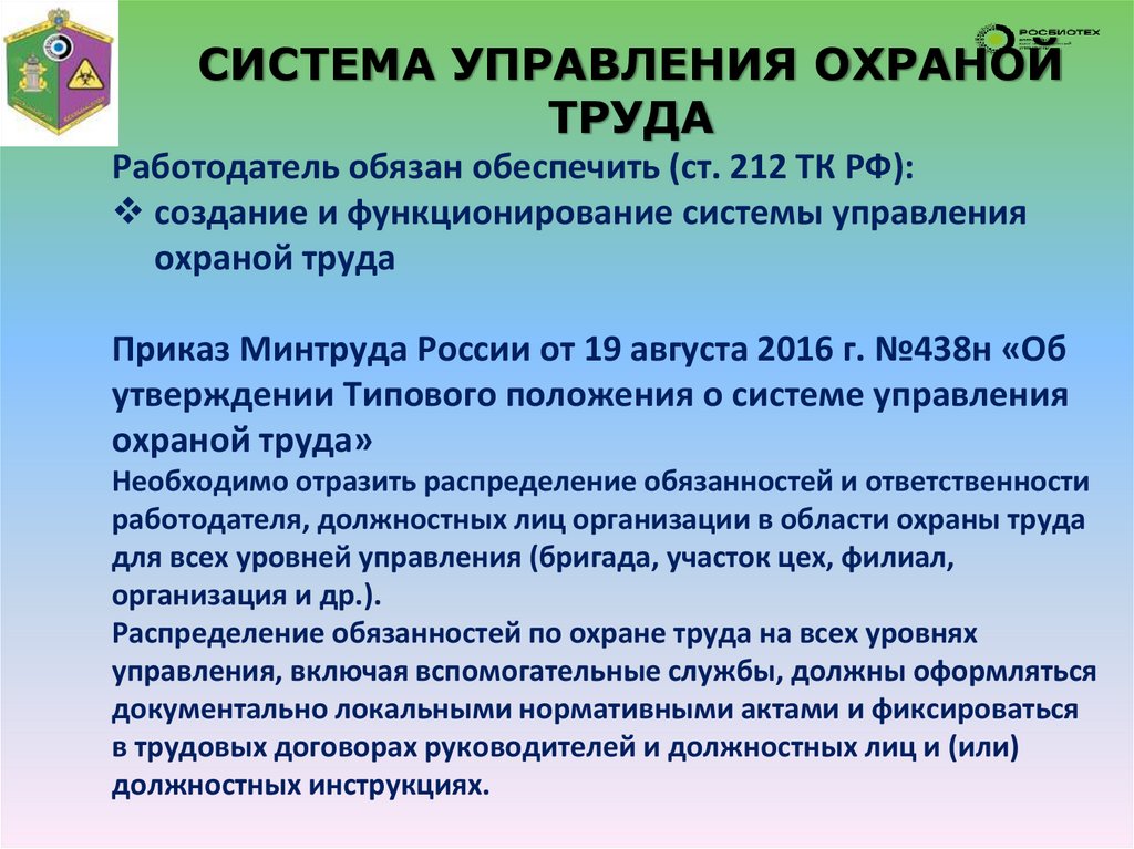 охраны труда (ст. 212 ТК РФ), должен проводить работы в