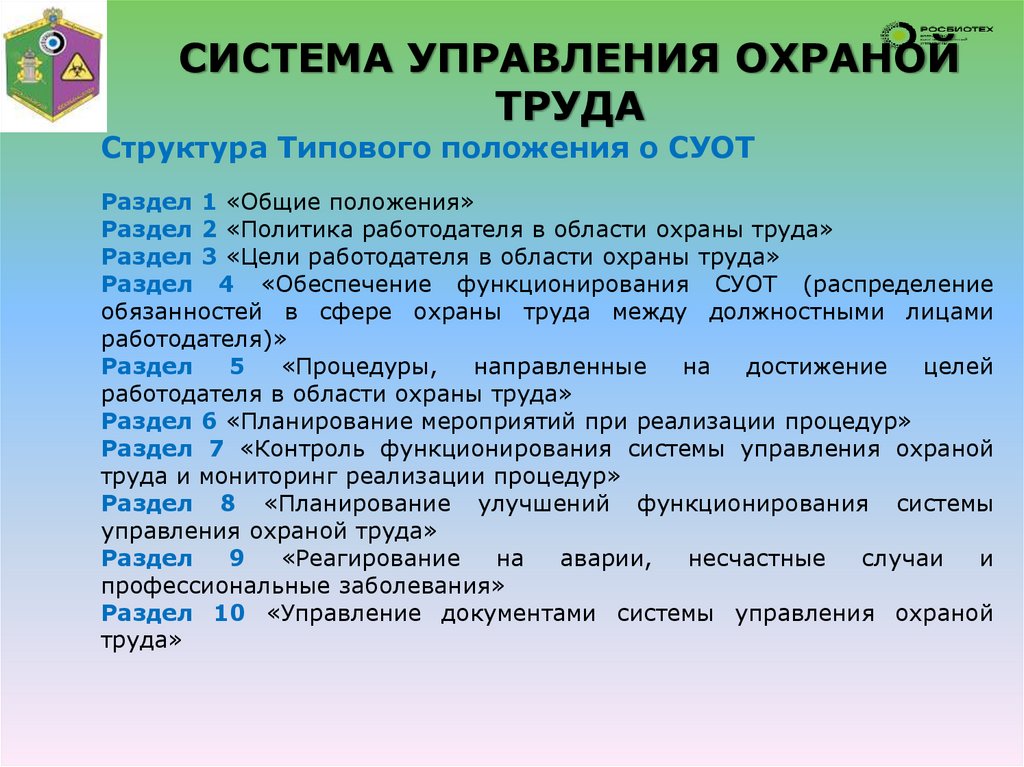 • совершенствование нормативного обеспечения охраны труда (утверждения