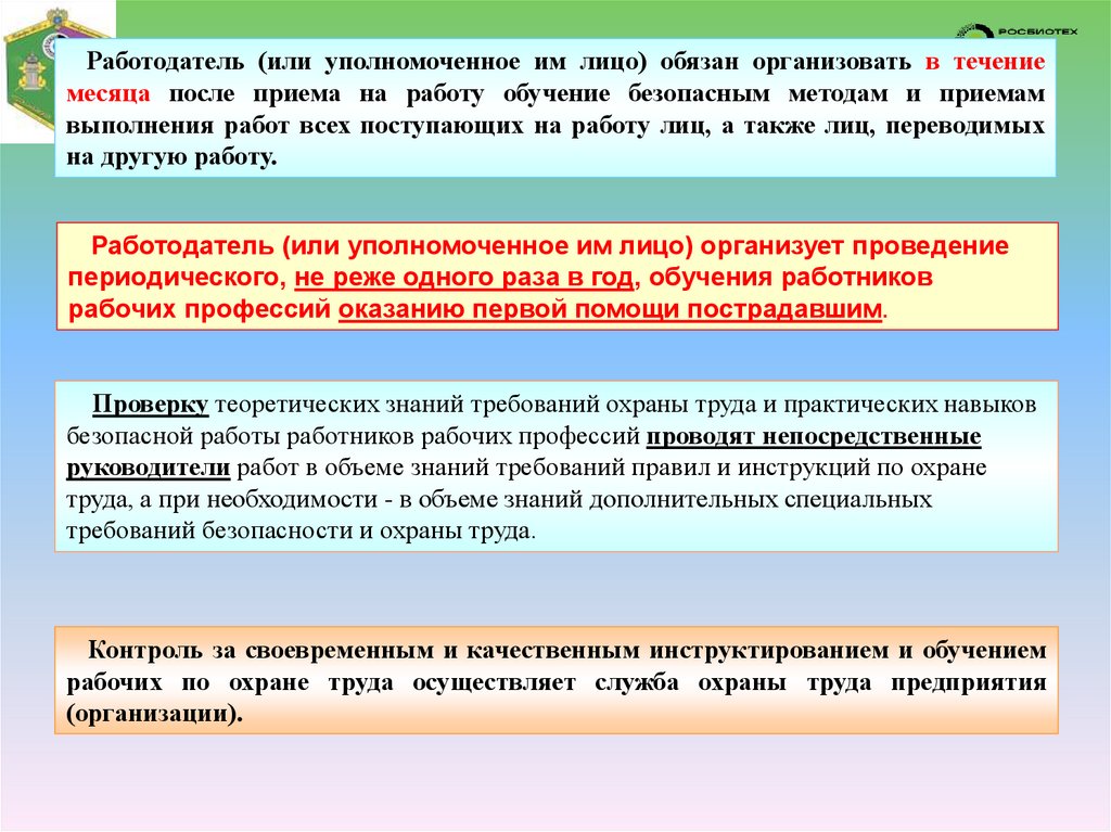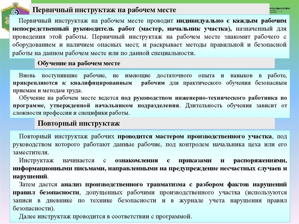 случаи, обязательно проходят инструктаж после выхода на работу.