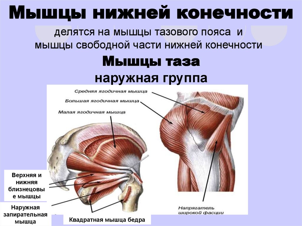 Мышцы нижней конечностиделятся на мышцы тазового пояса и