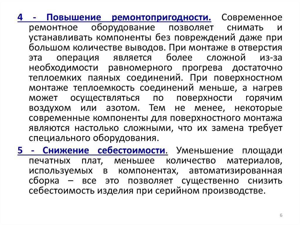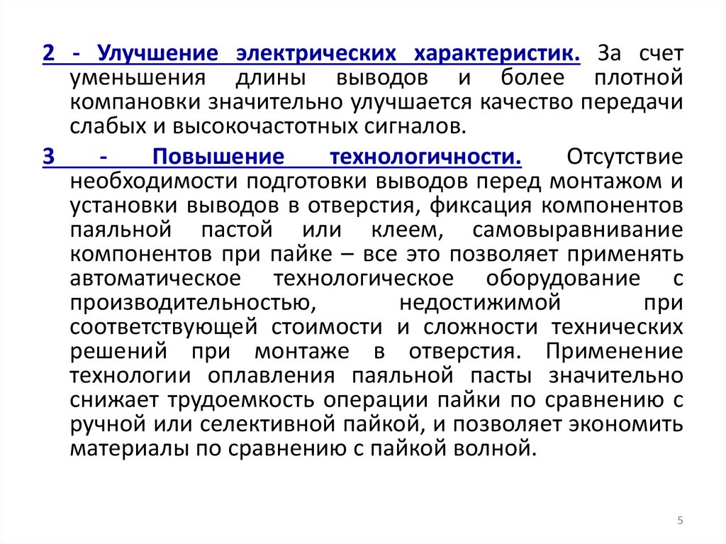 Технология поверхностного монтажа по сравнению с технологиеймонтажа в отверстия обладает рядом преимуществ как в