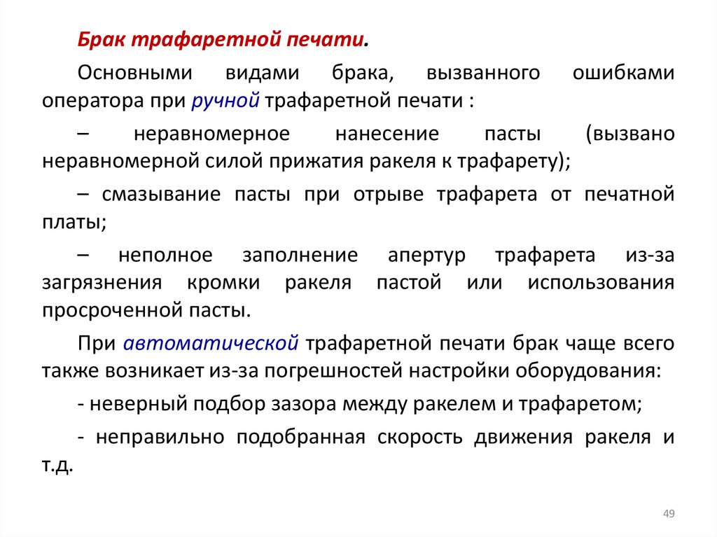 скорость движения ракеля, температура в печи и т. д.).