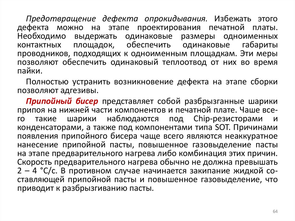2 – 4 °С/с. В противном случае начинается закипание жидкой составляющей припойной пасты и повышенное газовыделение, что