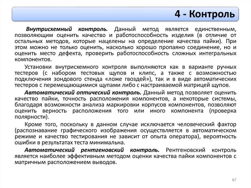 4 - КонтрольВнутрисхемный контроль. Данный метод является единственным,