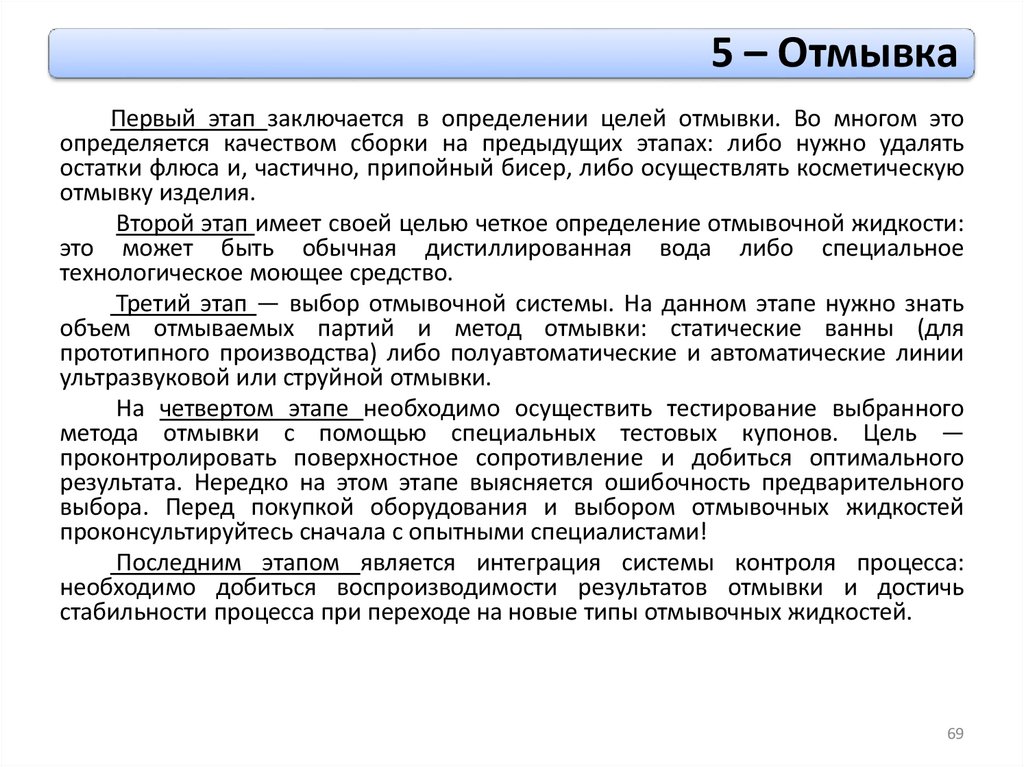 Третий этап — выбор отмывочной системы. На данном этапе нужно знать