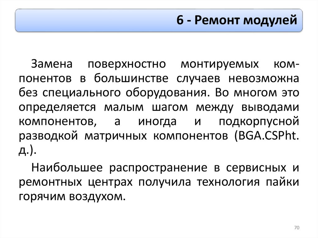 6 - Ремонт модулейЗамена поверхностно монтируемых компонентов в большинстве случаев невозможна