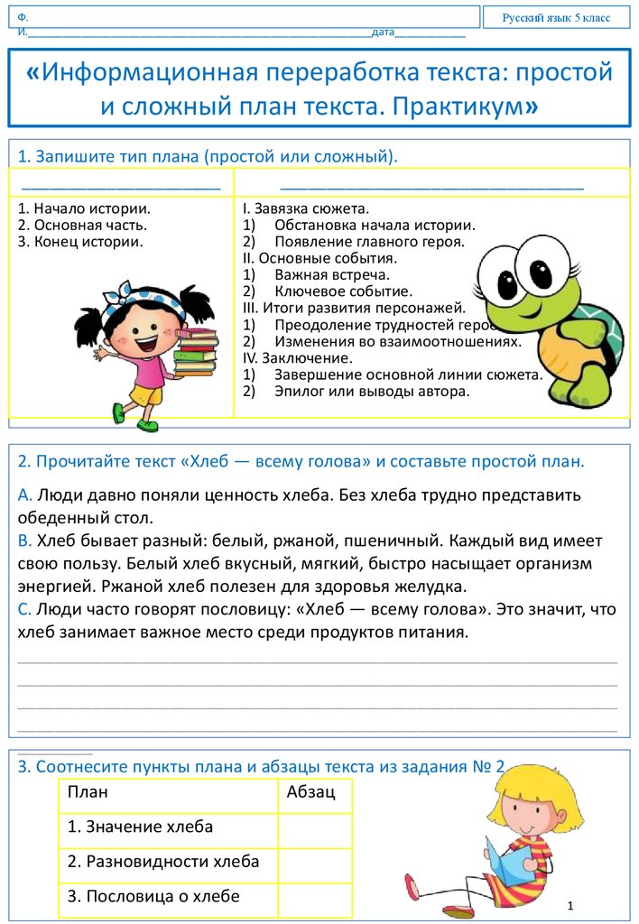 2. Прочитайте текст «Хлеб — всему голова» и составьте простой план.