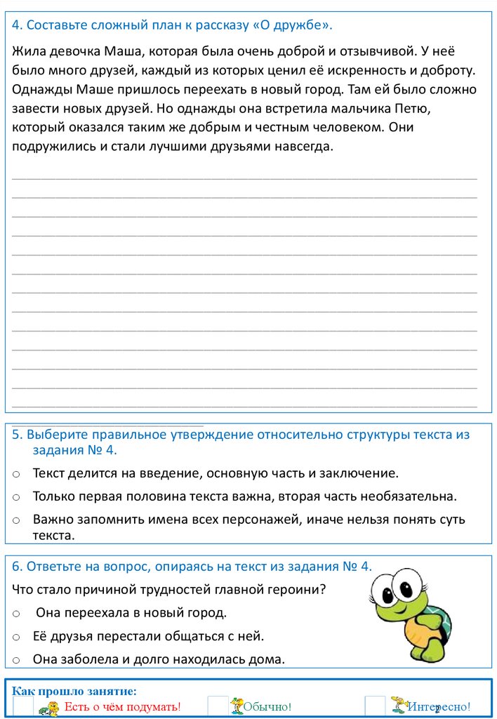 4. Составьте сложный план к рассказу «О дружбе».Жила девочка Маша, которая была очень доброй и отзывчивой. У неё