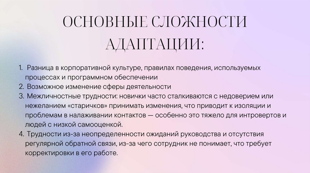 ОСНОВНЫЕ СЛОЖНОСТИАДАПТАЦИИ: