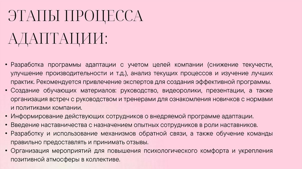 • Информирование действующих сотрудников о внедряемой программе адаптации.