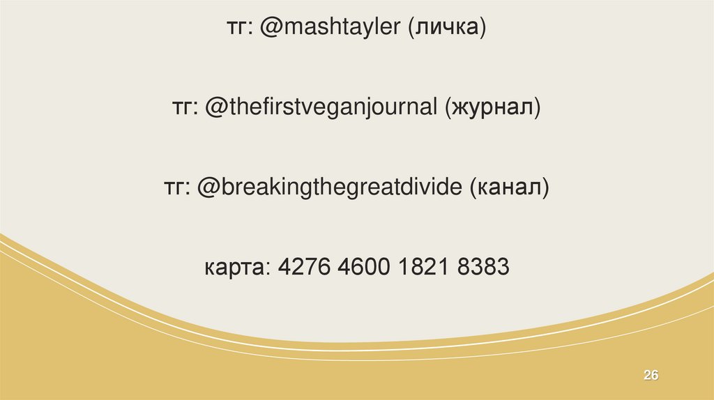 тг: @mashtayler (личка)тг: @thefirstveganjournal (журнал)