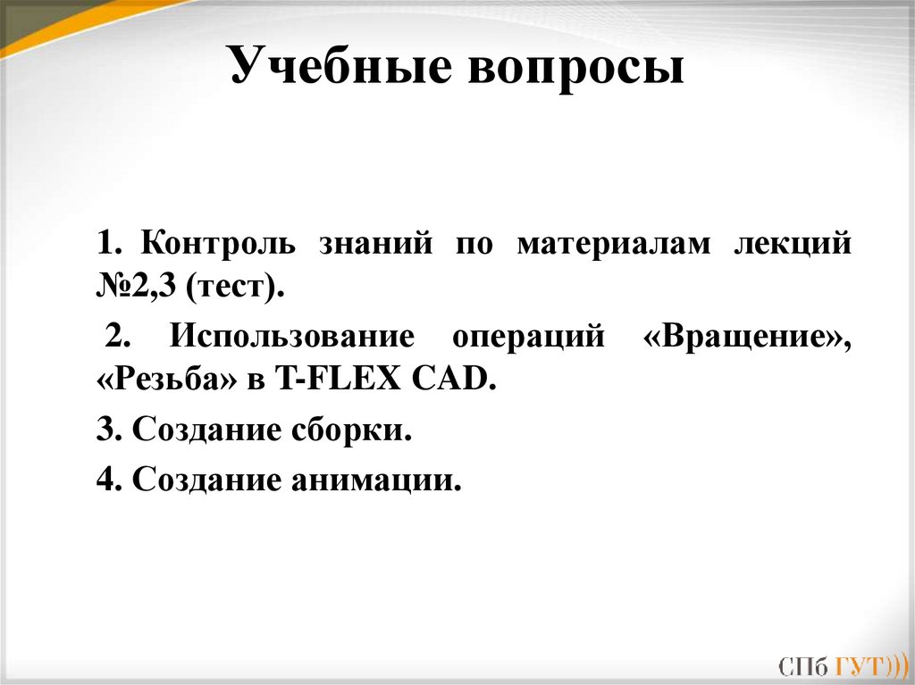 Учебные вопросы1. Контроль знаний по материалам лекций
