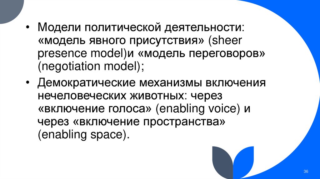 • Модели политической деятельности:«модель явного присутствия» (sheer