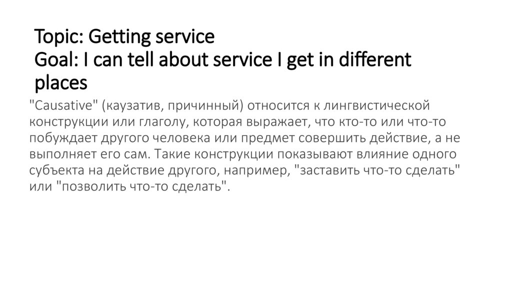 Topic: Getting serviceGoal: I can tell about service I get in different