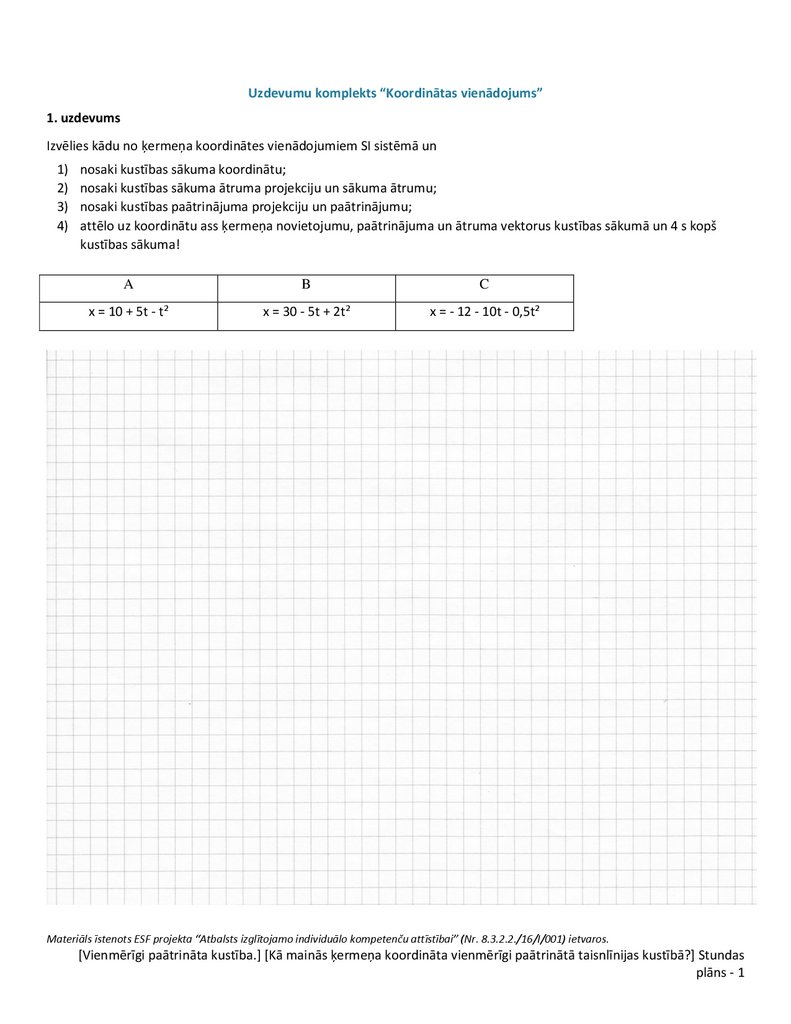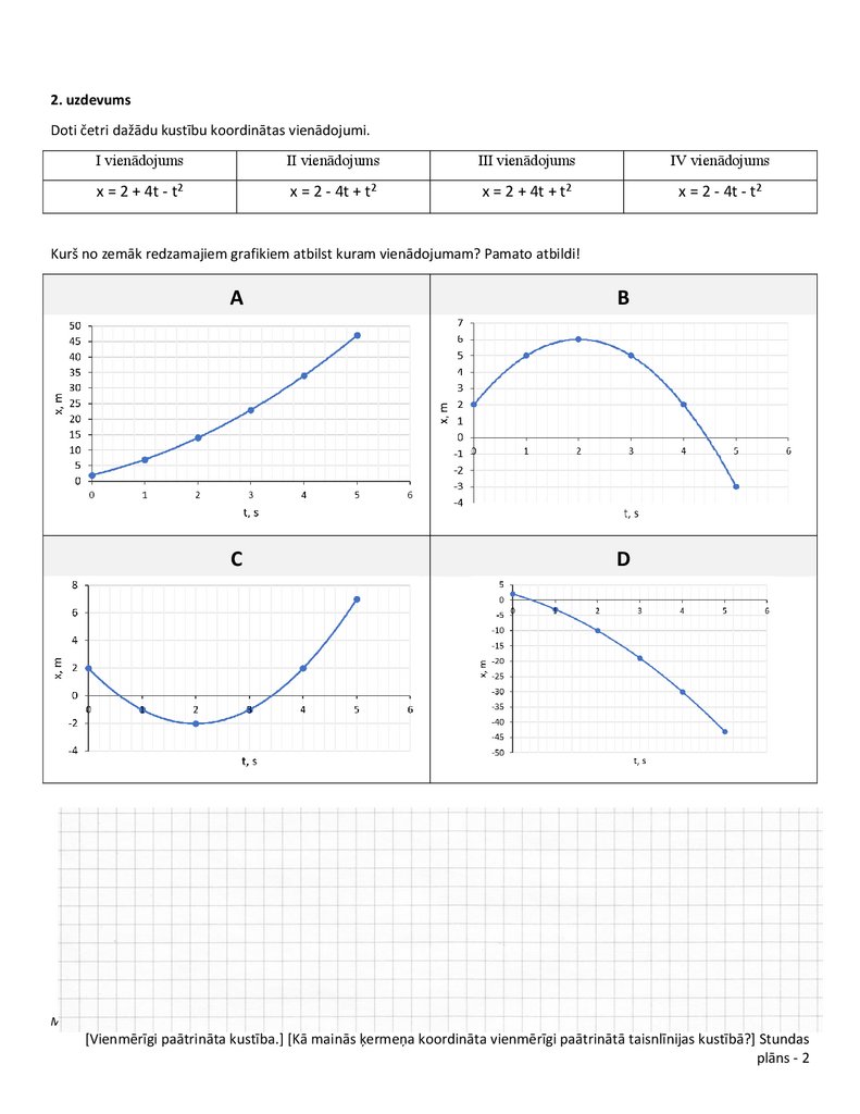 2. uzdevumsDoti četri dažādu kustību koordinātas vienādojumi.
